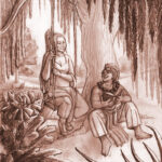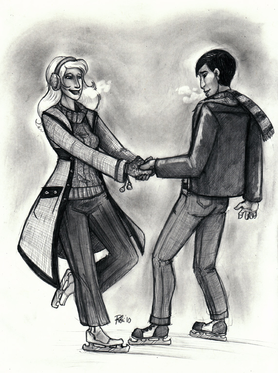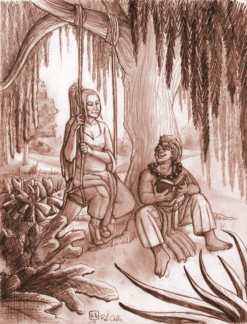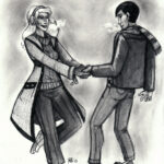 - An example of a complex inked drawing with multiple characters and background